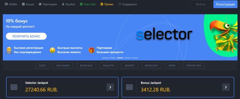 Selector Casino – официальный сайт и рабочее зеркало